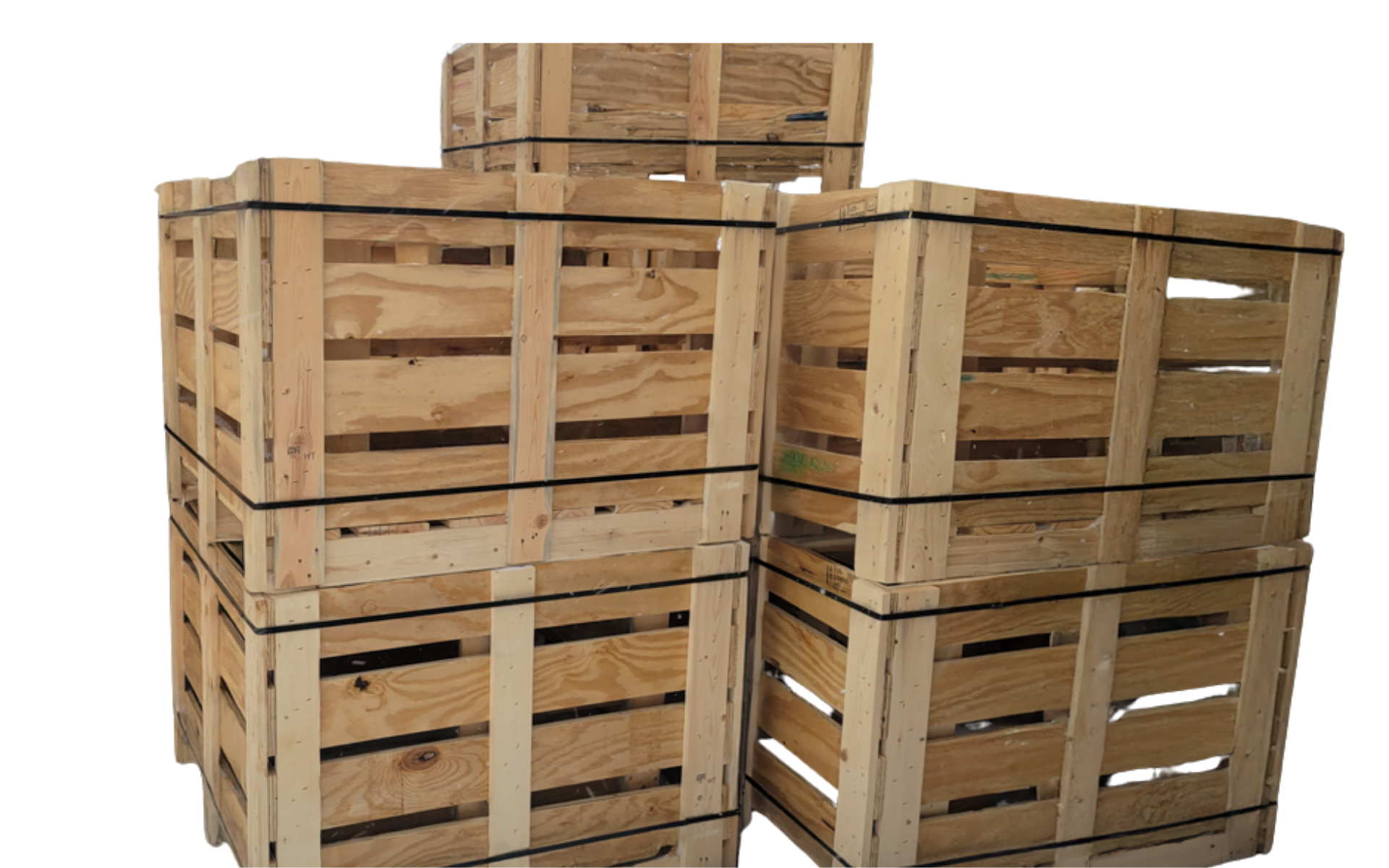 Wire bound crates are lighter, fold flat for space savings and assemble faster than standard wooden crates. Unlike pallet collars, they can be stacked taller and are easier to ship collapsed.