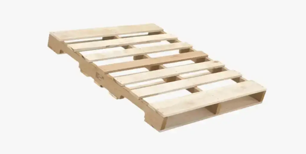 A standard GMA-style pallet measures 48 inches long by 40 inches wide with four way forklift entry.