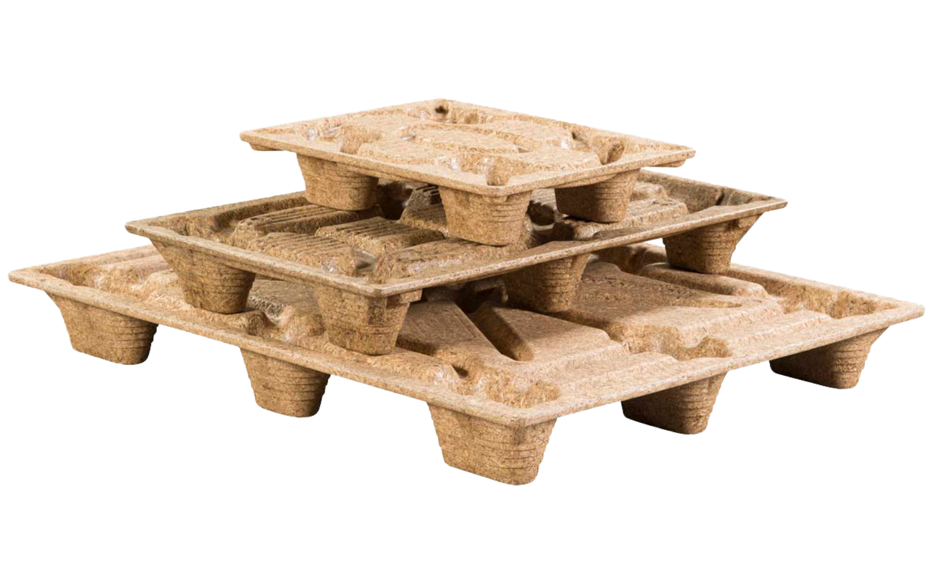 Pressed wood pallets are lighter, nestable, nail-free and naturally ISPM-15 compliant, offering significant cost, space and safety advantages compared to traditional wood pallets.